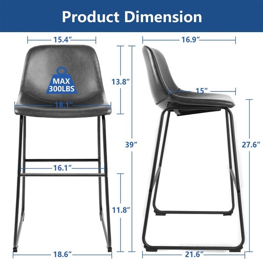 Industrial Grey PU Leather Bar Stools with Back (Set/2)