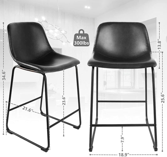 Faux Leather Counter Height Stools Island Chairs Set of 2