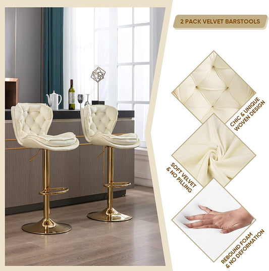 Adjustable Velvet Barstools with Swivel Base, Set of 2
