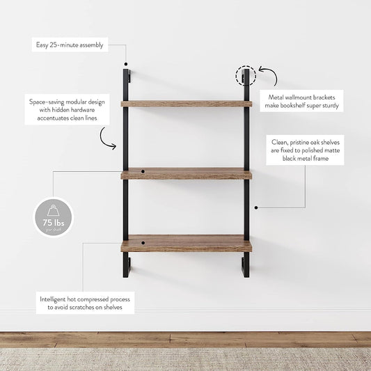 Rustic Oak Bookshelf with Metal Frame, 3-Tier
