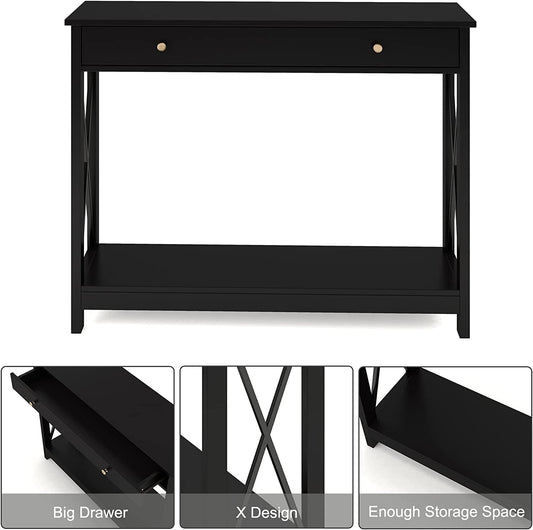 Contemporary 3-Drawer Console Table with 1 Shelf, Entrance Table for