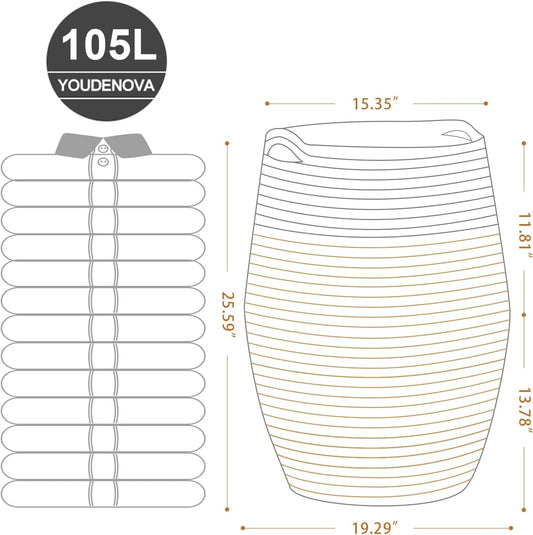 Cotton Rope Laundry Hamper by YOUDENOVA, 105L - Woven Collapsible Basket Clothes Storage for Blankets, Room Organizing, Bedroom Storage, – Brown & White