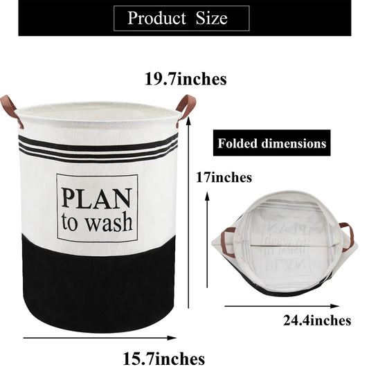 Round Waterproof Canvas Laundry Hamper Basket, 19.7" Large Folding Laundry Clothes Hamper with Handles, Dirty Clothes Basket for Kids Room, Toy Organizer, Home Decor, Baby Hamper (Black Words)