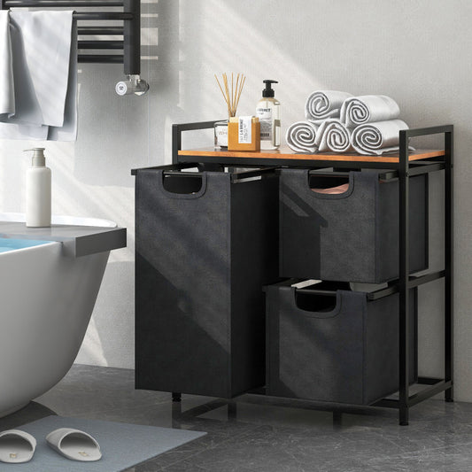 Laundry Basket Organizer Dirty Clothes Hamper with Shelf and 3 Removable Bags