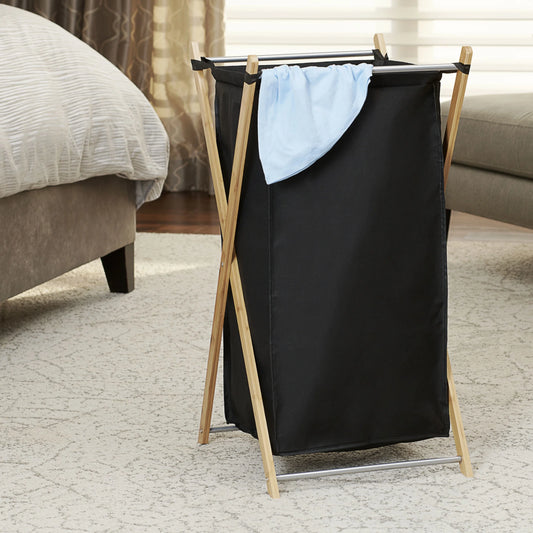 Household Essential 6540-1 X-Frame Laundry Hamper, Bamboo Frame with Black Canvas Bag