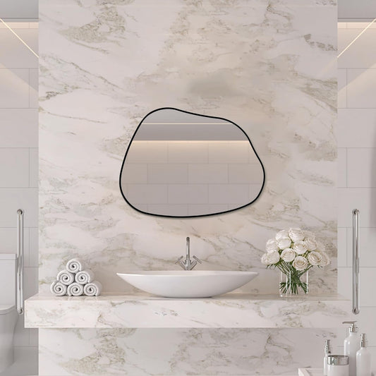 Elegant 36X24 Asymmetric Irregular Wall Mirror with Wooden Frame -