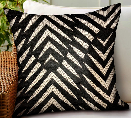 Raven Palm Black Geometric Luxury Outdoor/Indoor Throw Pillow