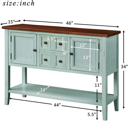 Cambridge Series Sideboard Table with Bottom Shelf, Antique Blue