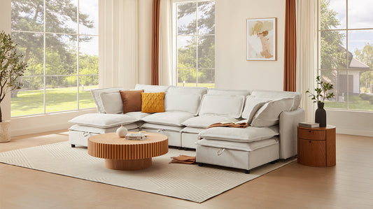 U_Style Double-Layer Cushion Modern U-Shaped Modular Sofa with Storage & Bed