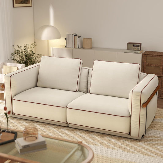 Modular Sectional Sofa: 86-inch Luxury Cloud Sofa with Ottoman, 70% Down-Filled Sofa Cushions, Removable & Washable, Ultra-Soft Linen Sofa, Extra-Large White Living Room Sofa