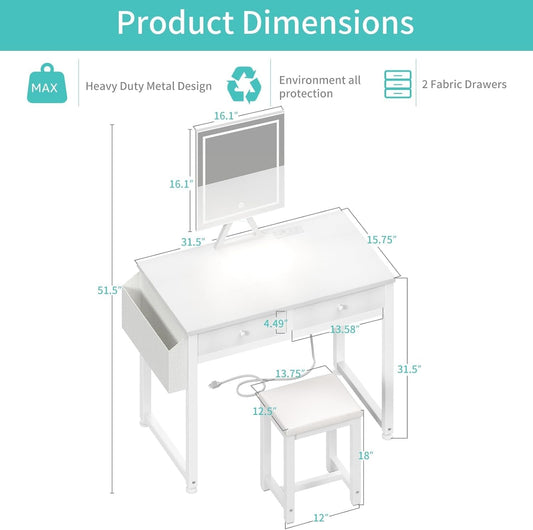 Small Makeup Vanity Desk with Fabric Drawers, 32 Inch White Vanity