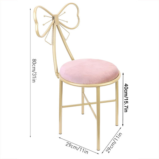 Bow Vanity Chair Set, Princess Makeup Stool (Pink)