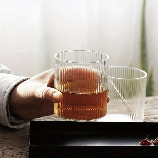 Set of 4 Ribbed Glass Tumblers Versatile Durable Stylish
