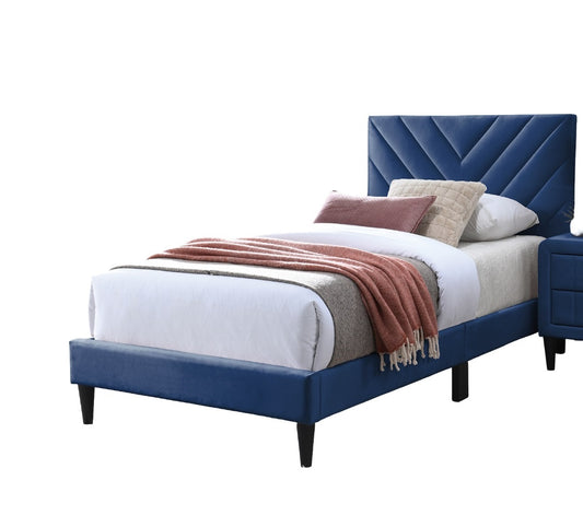 Contemporary Style Full Size Bed Adjustable Headboard Middle Support Legs Navy Blue Finish Bedroom Furniture