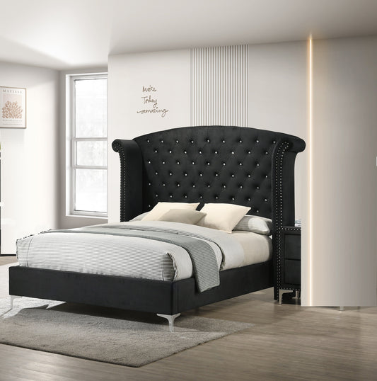 1pc Contemporary Upholstered King Bed Tufted Headboard and Footboard Wooden Luxury Glam Bedroom Furniture Black