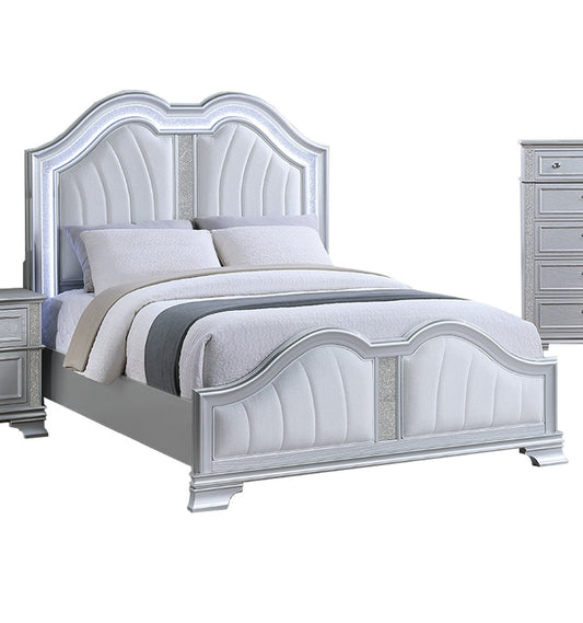 Contemporary Elegant Look Unique Design Full Size Bed Silver Finish Built In USB 1pc Bedroom Bed