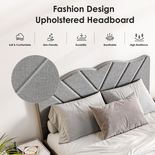Full Size Modern Platform Bed Frame with Upholstered Headboard & Wooden Slats - No Box Spring Needed, Easy Assembly, Grey