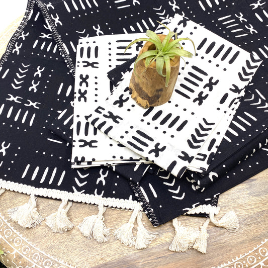 Handmade, Coffee Table Runner, Black Mudcloth, Wax Print