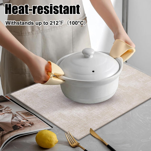 Homaxy Faux Leather Heat Resistant Placemats for Dining Table Set of 6, Waterproof Wipeable Washable PU Table Mats, Easy to Clean Anti-Slip Place Mats, 11.8" X 17", Beige