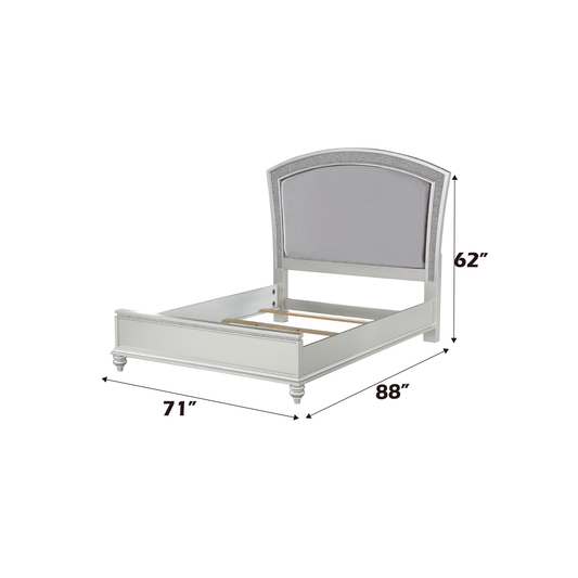 Verona G6735B-QSB Queen Bed in Pearl White with Wood Veneers and Jeweled Tufted Upholstered Headboard