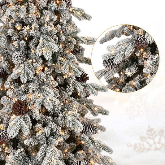 6FT Pre-Lit Hinged Artificial Fir ChristmasTree, Xmas Tree Snow Flocked Artificial Holiday Christmas Tree w/750 Branch Tips X-mas