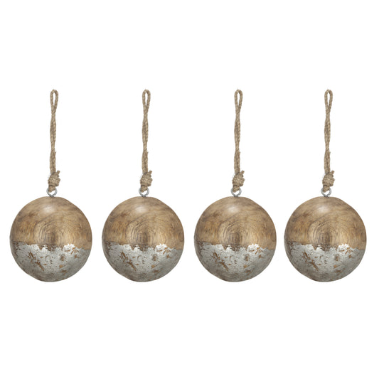 D4' Christmas Ball Ornaments, Wood Decorative Hanging Ball Christmas Tree Ornaments for Holiday Party Decorations, Set of 4