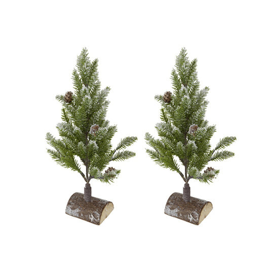 Set of 2, 13.5' christmas PVC Tree On Wood Base With Snow