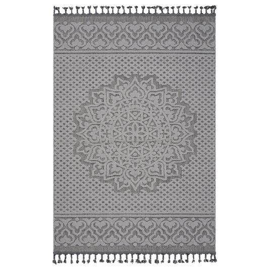 LOOM & LUXE Collection 6X9 Gray/White /Medallion Indoor/Outdoor Area Rug