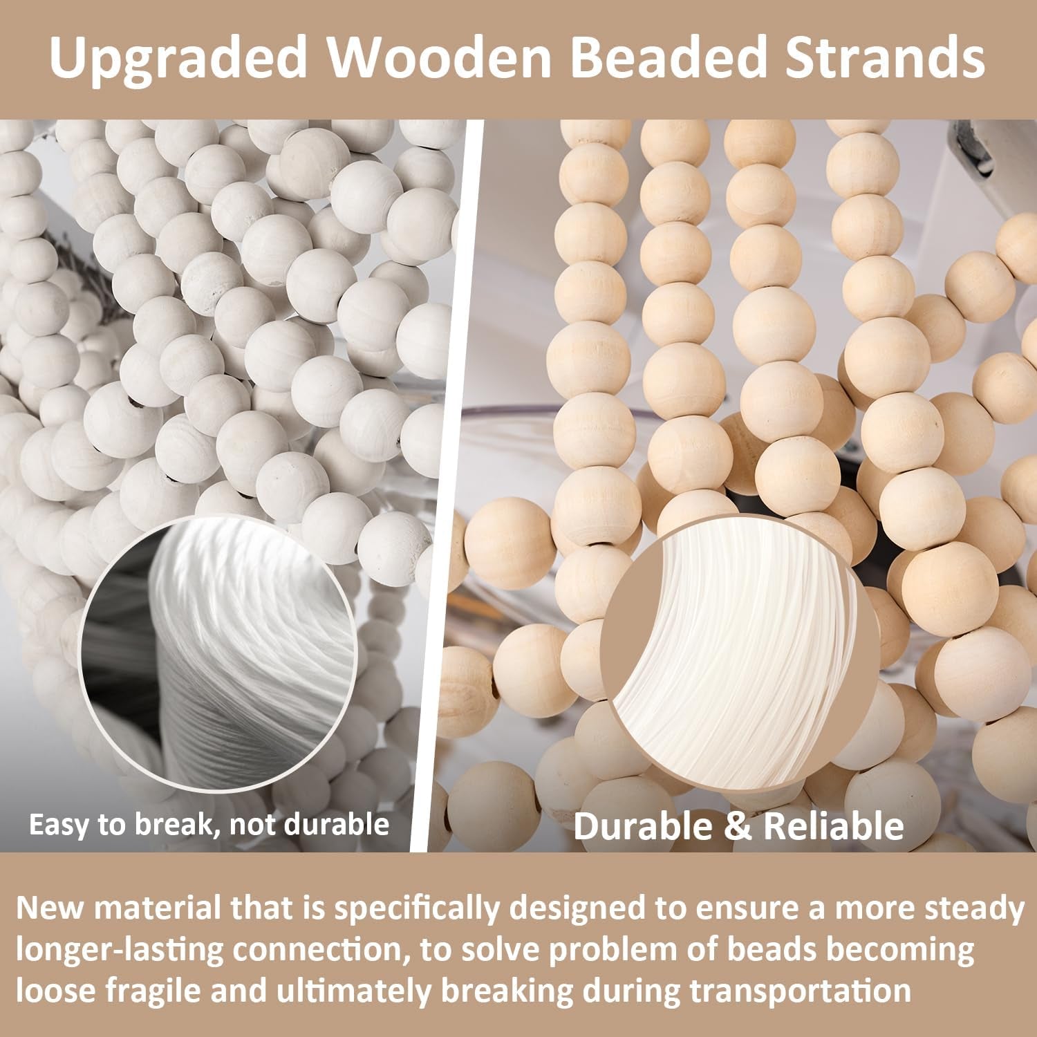 - Upgraded Wooden Beads Strands: Enhanced durability with a steady, long-lasting connection to prevent beads from becoming loose or breaking during transport.