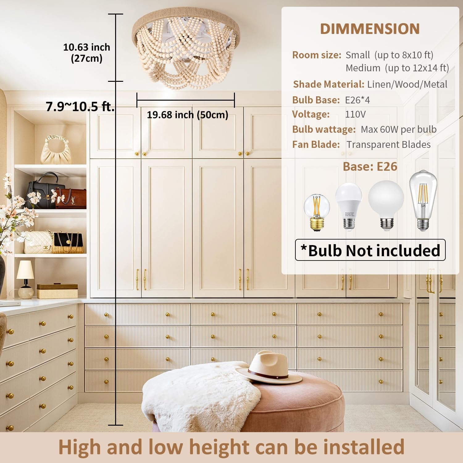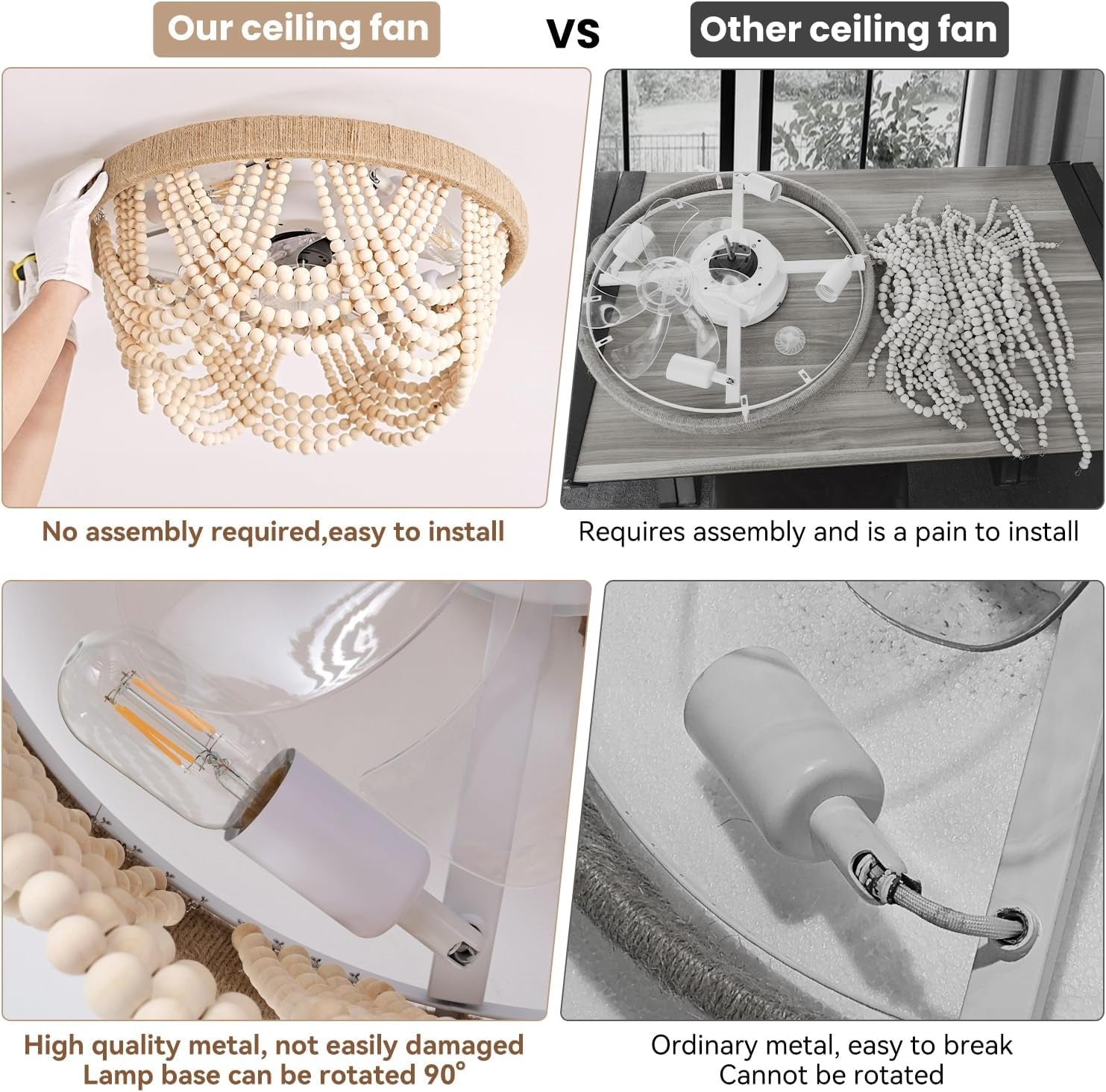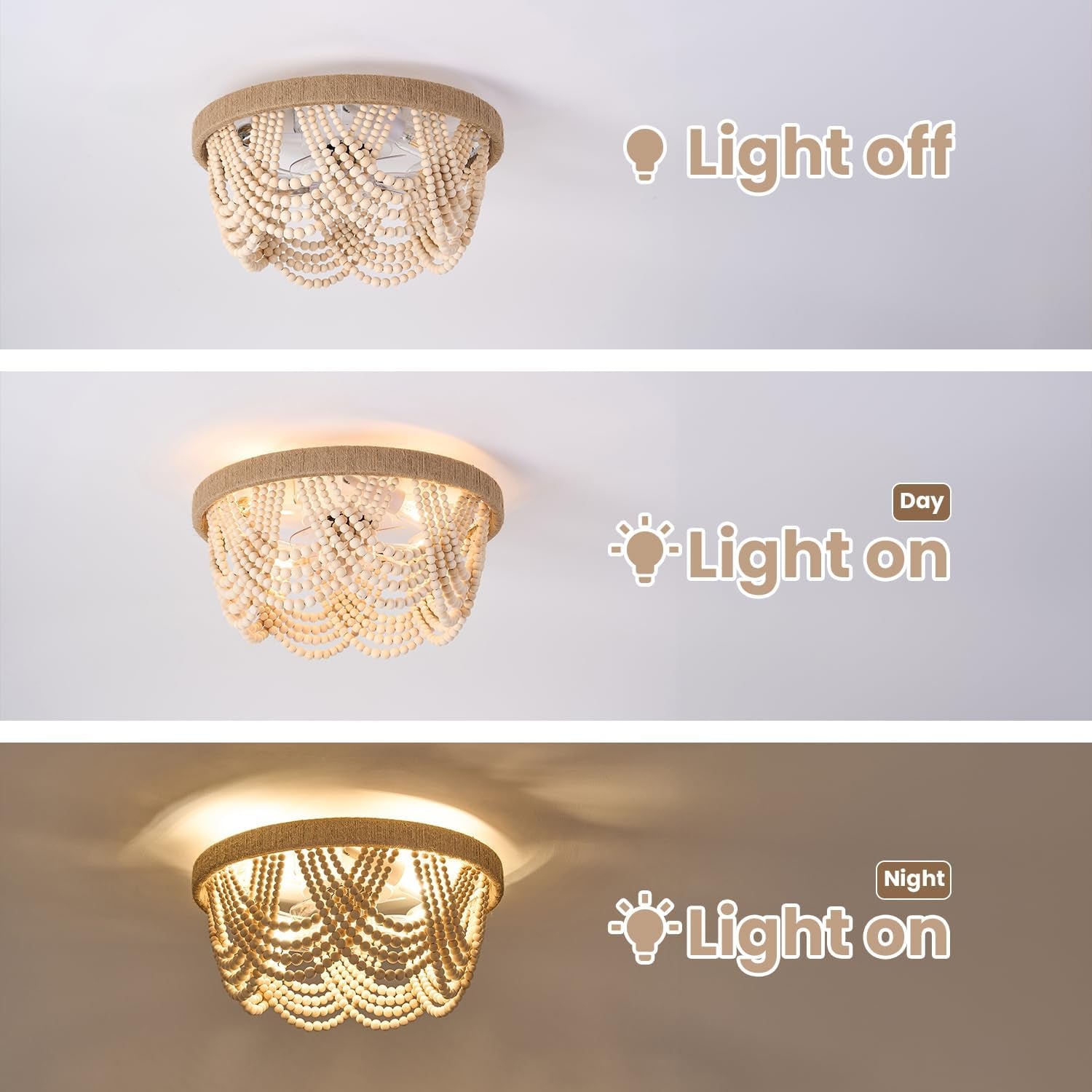 - Bohemian Casual Elegance Design: Handcrafted warm white wood beads paired with sturdy paper rope create a stylish, artistic look that casts captivating shadows on your ceiling.