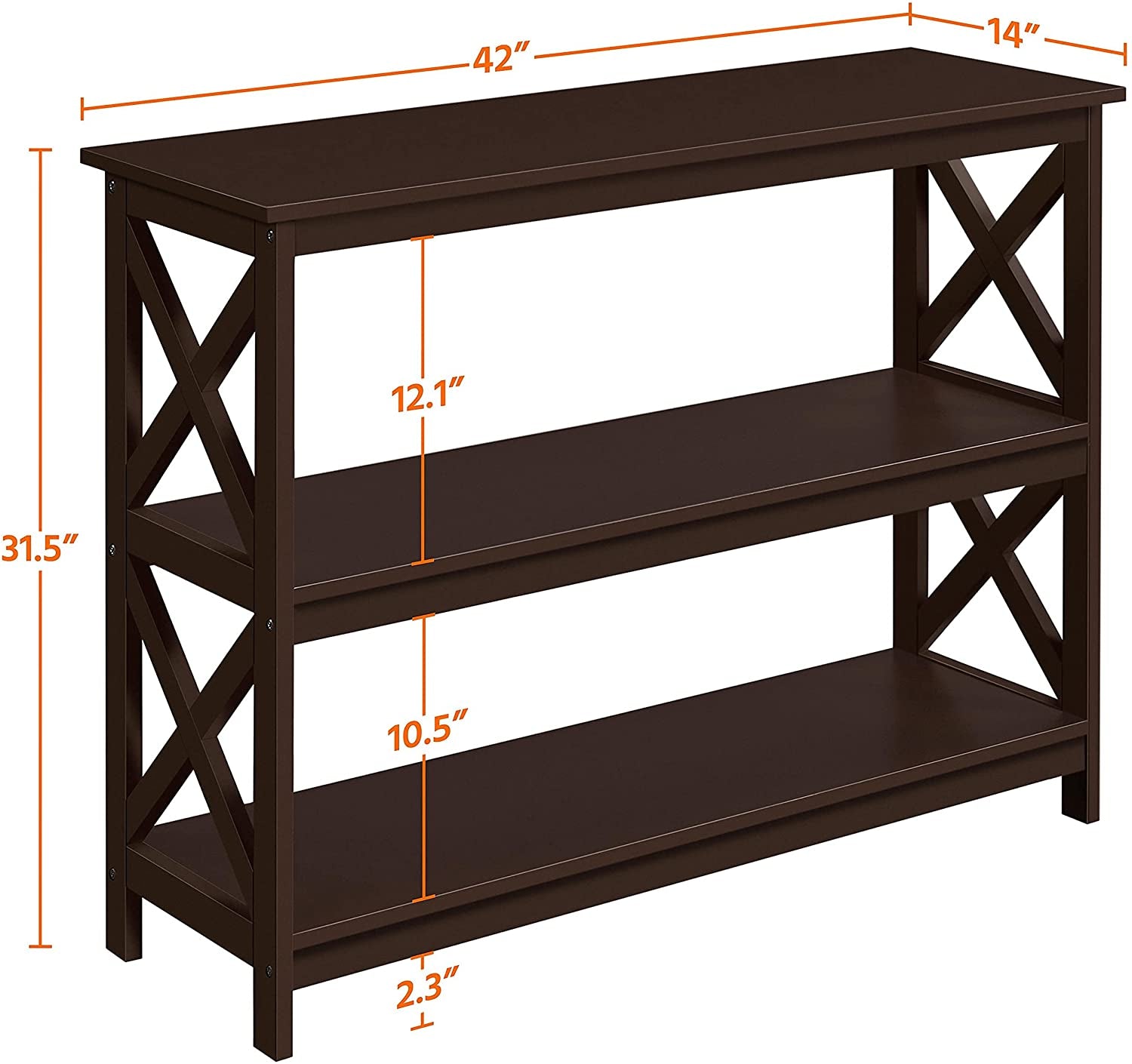 X Design 3 Shelves Wooden Console Table Sofa Side Table for Entryway Living Room