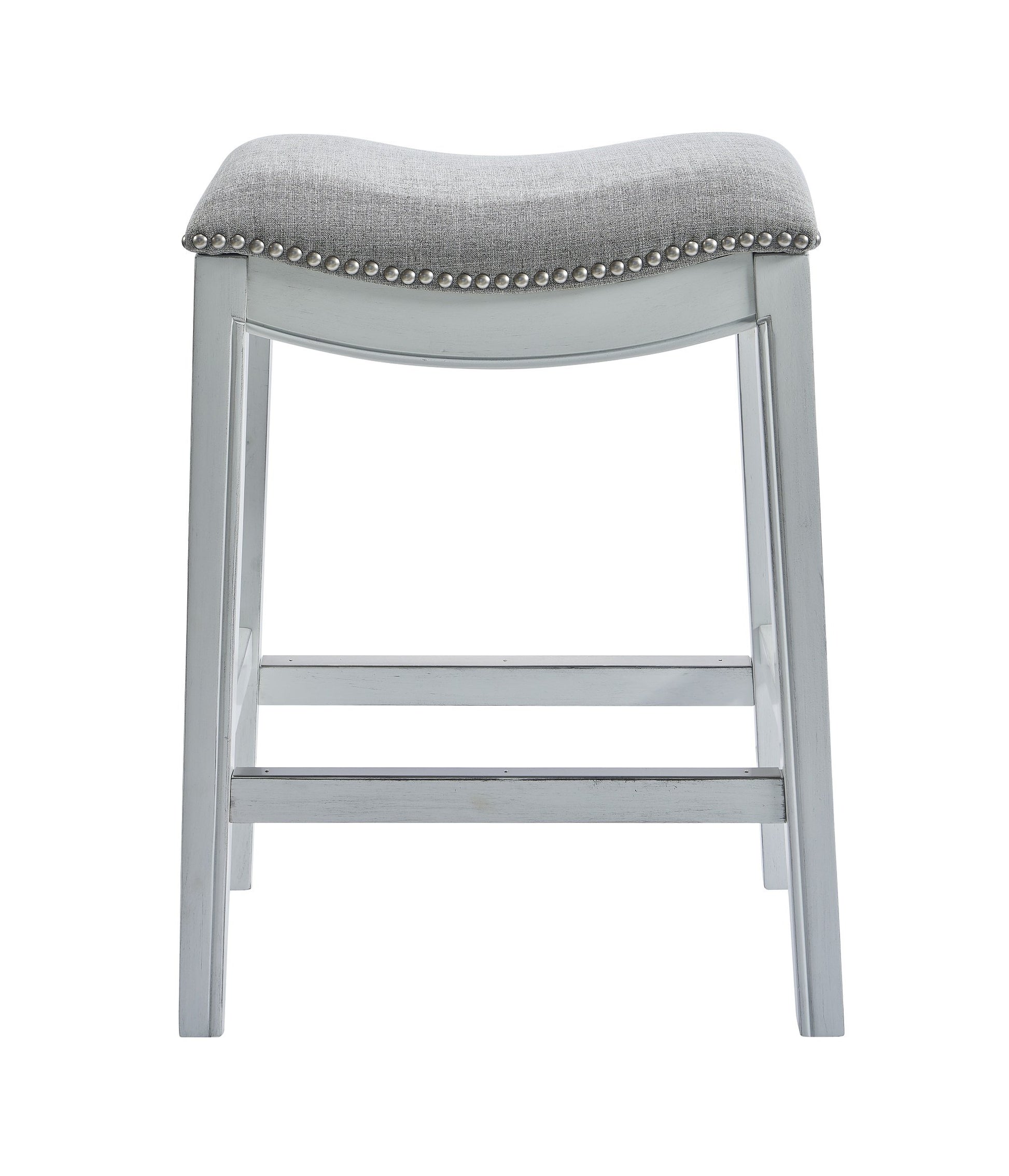 This Bar Stool has a comfortably upholstered seat articulated with antique nail head accents that are hand applied. The subtly contoured saddle is atop a beautifully finished solid wood frame. Solid wooden furniture is durable, sturdy and timeless.