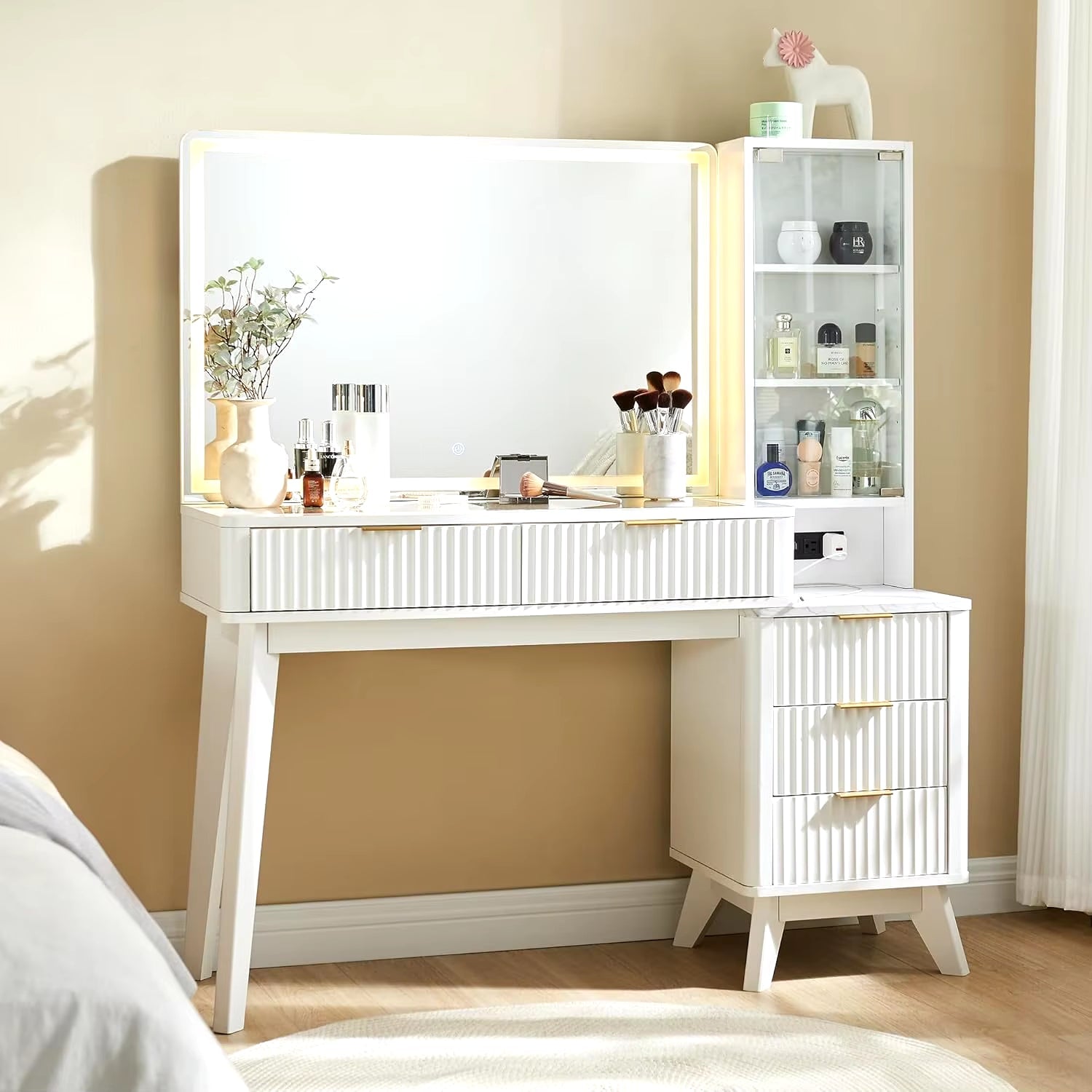 Elevate your beauty routine with the Stylish 48" Fluted Makeup Vanity. Designed to combine functionality with aesthetic appeal, this vanity set is perfect for any modern bedroom.
