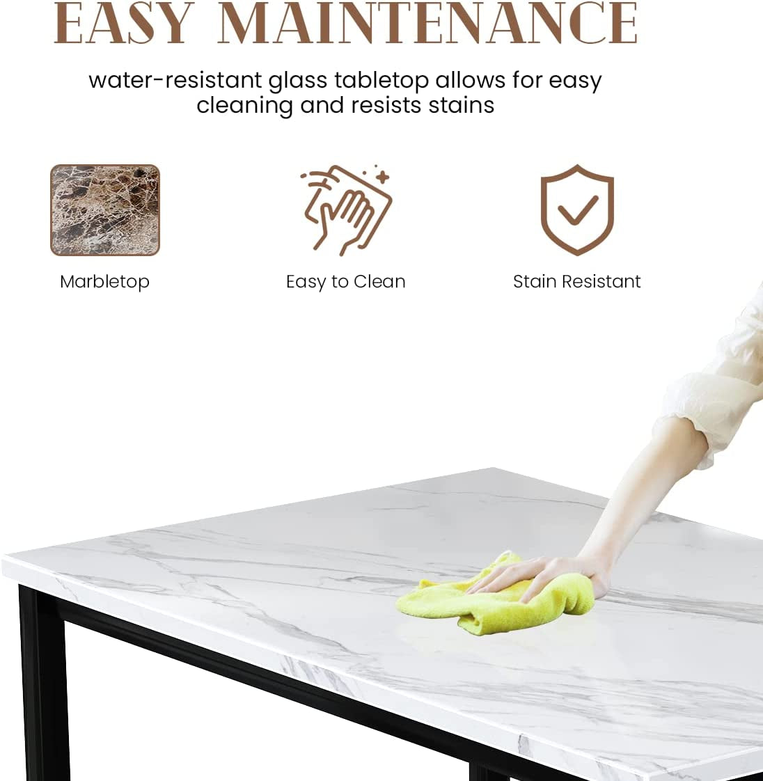 - ❤SMALL DINING TABLE SET FOR 4 - Enjoy premium solid build designed for heightened durability and longevity,The thickness of the meal and the improvement of the connection frame make the dining table set more resistant to scratches from daily use.Our table and chairs set has smooth marble table top makes cleaning the easiest; just wipe them clean in a few seconds! Easy to clean the dining table set!