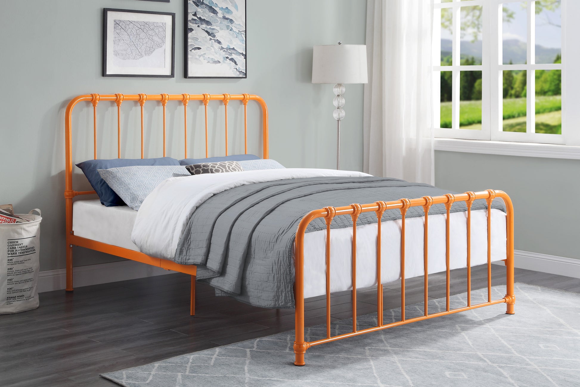 Classic lines and accenting provide a timeless look to the design of the Bethany Collection. The metal bed’s orange finish lends unique character to the design of your bedroom. The rounded profile of the queen bed is paired with traditional accent joints, creating a bed with myriad decorative possibilities.