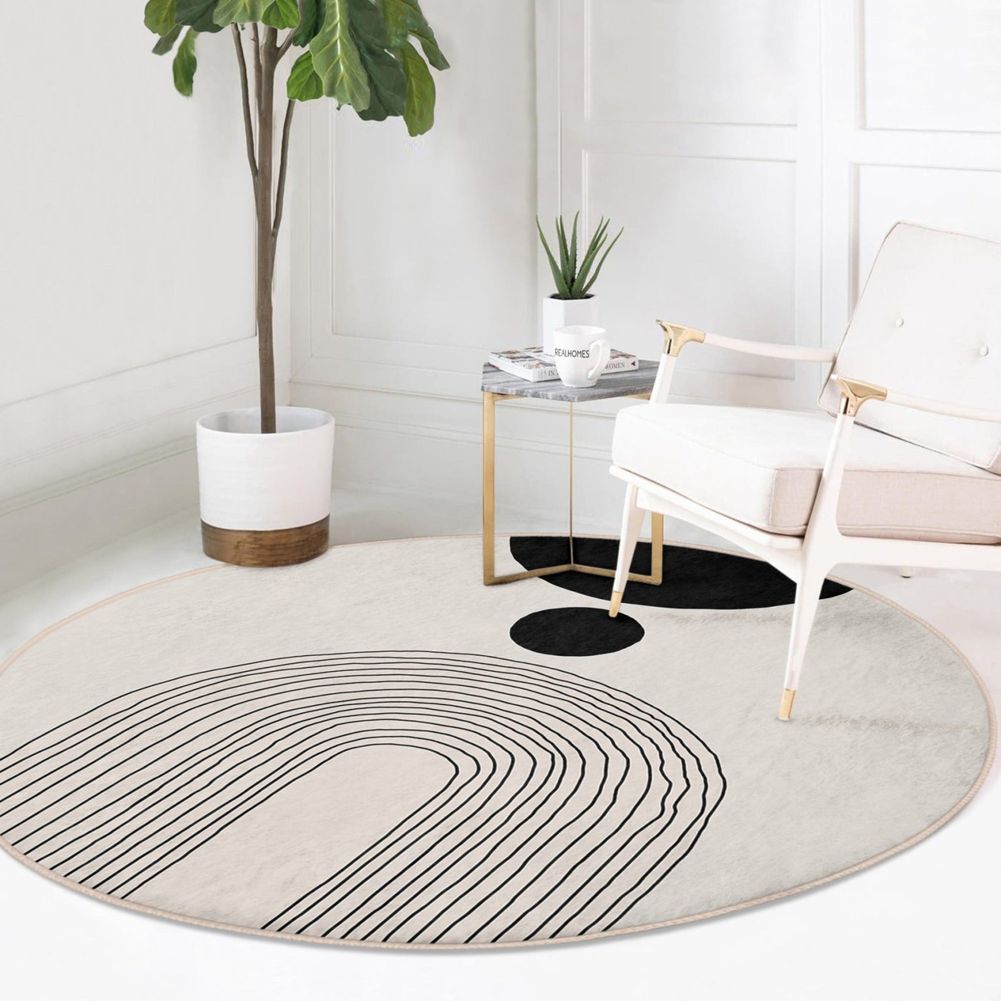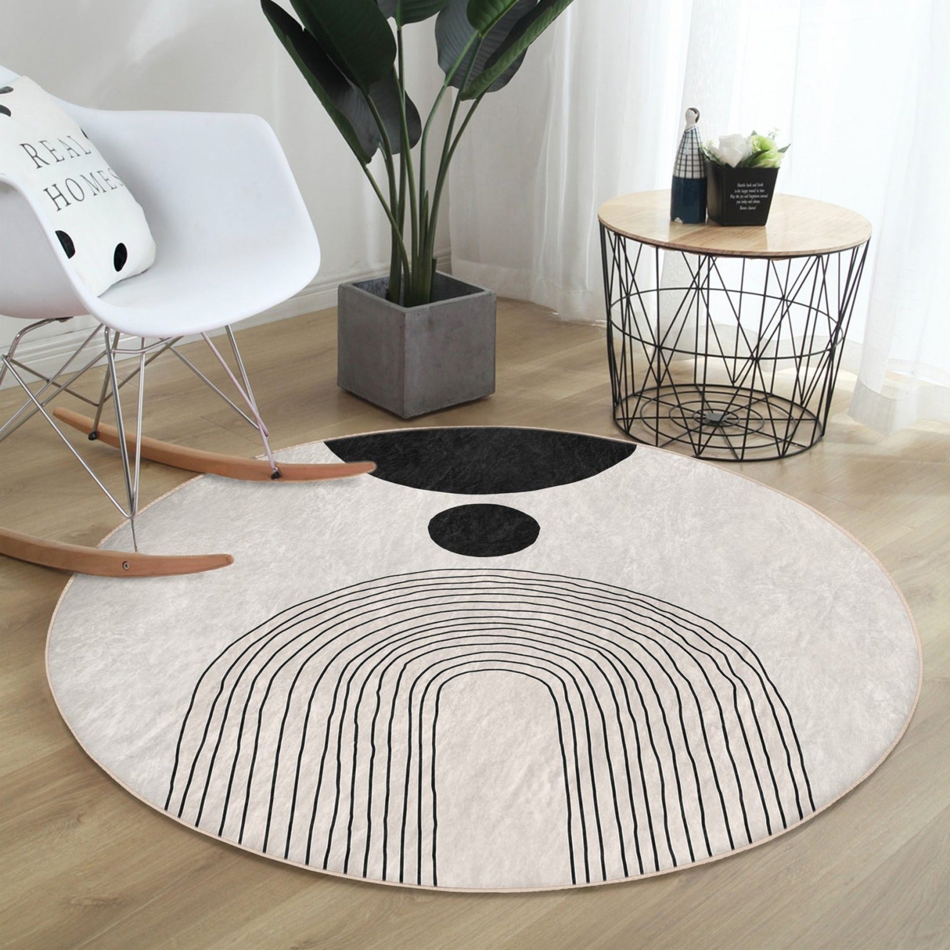 Abstract Round Rug, Minimalist Home Area Rug, Living Room Circle Carpet, Non Slip Floor Carpet