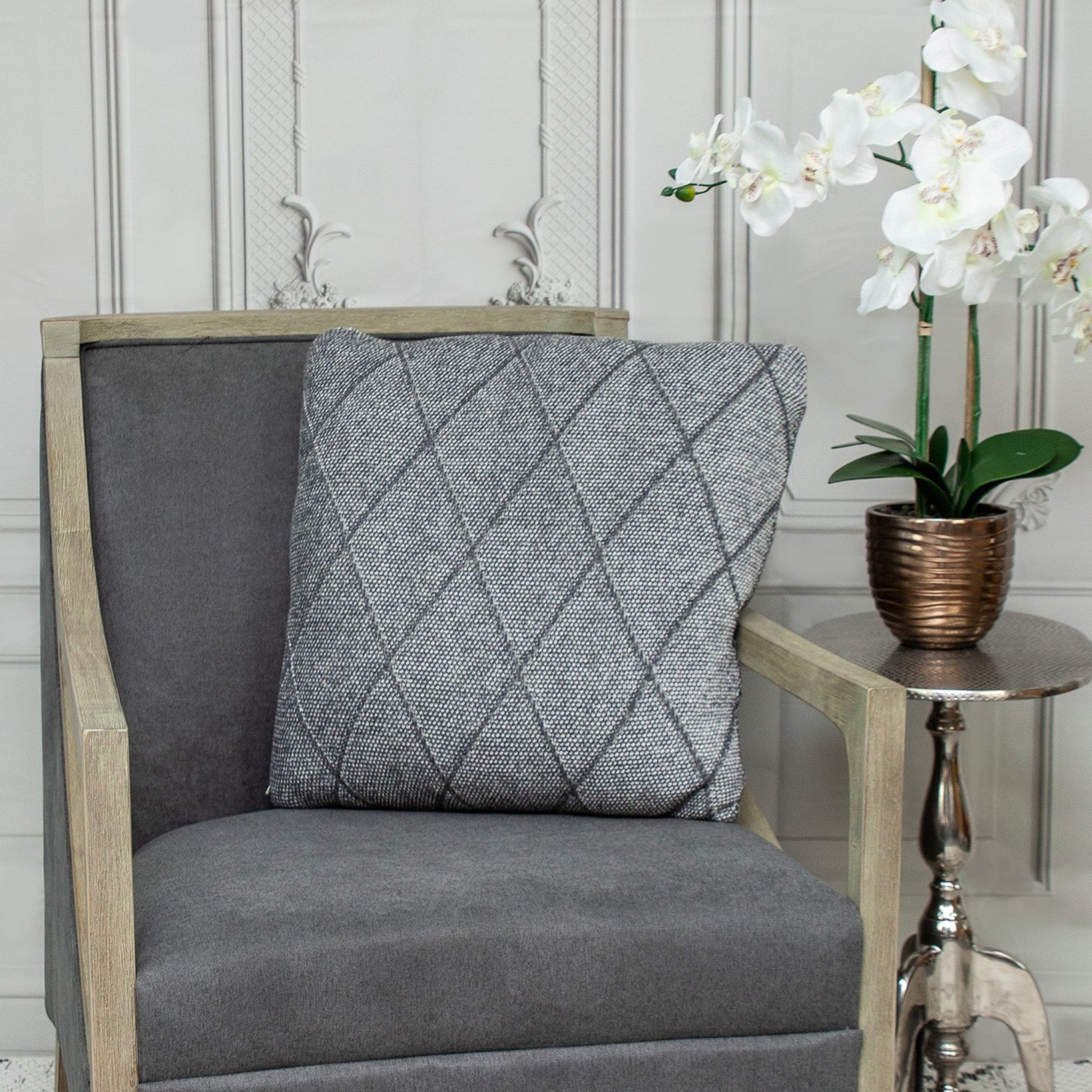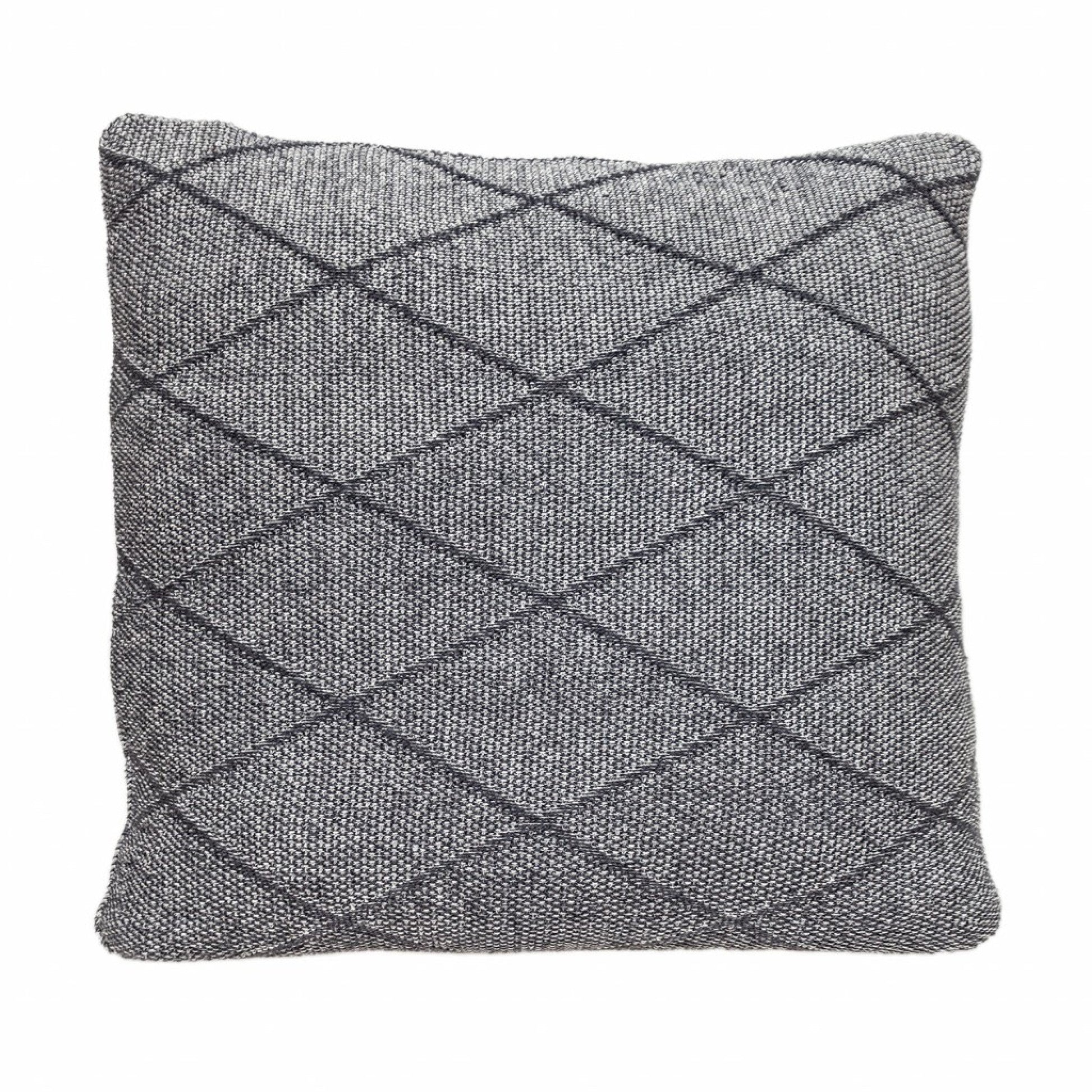 Ash is one of those neutral colors that goes well with any type of furniture and interior, and this Ash Diamond Throw Pillow rightly offers the simplicity and elegance you are looking for. Made from 100% cotton, the knitted cushion cover has the same diamond pattern on the front and back, and there is a zipper closure on the side for easy cleaning. 20” x 20” x 4”