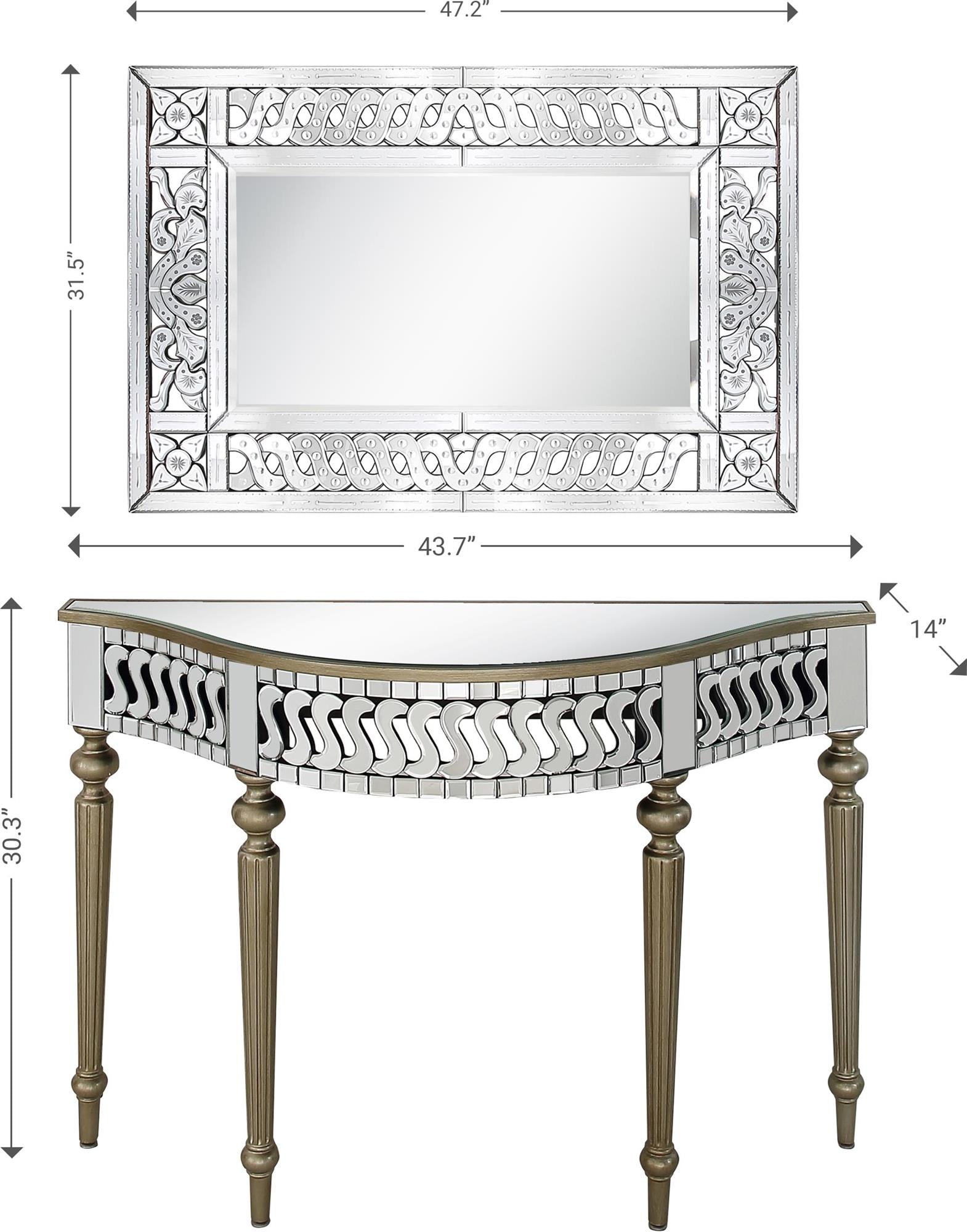 The Atelier Wall Mirror is everything you've imagined and so much more. This fully mirrored piece captures the light from every angle and is ready to reflect your home's beauty in an instant. Pair her with our matching Atelier Console Table and watch the magic unfold. The Atelier Console Table is simply a star. With tapered legs, a fully mirrored exterior and approximately 44 inches in width, the Atelier Console Table is prepared to create the drama your home beckons. And with a demilune design (perfect for tight spaces), what's not to love?