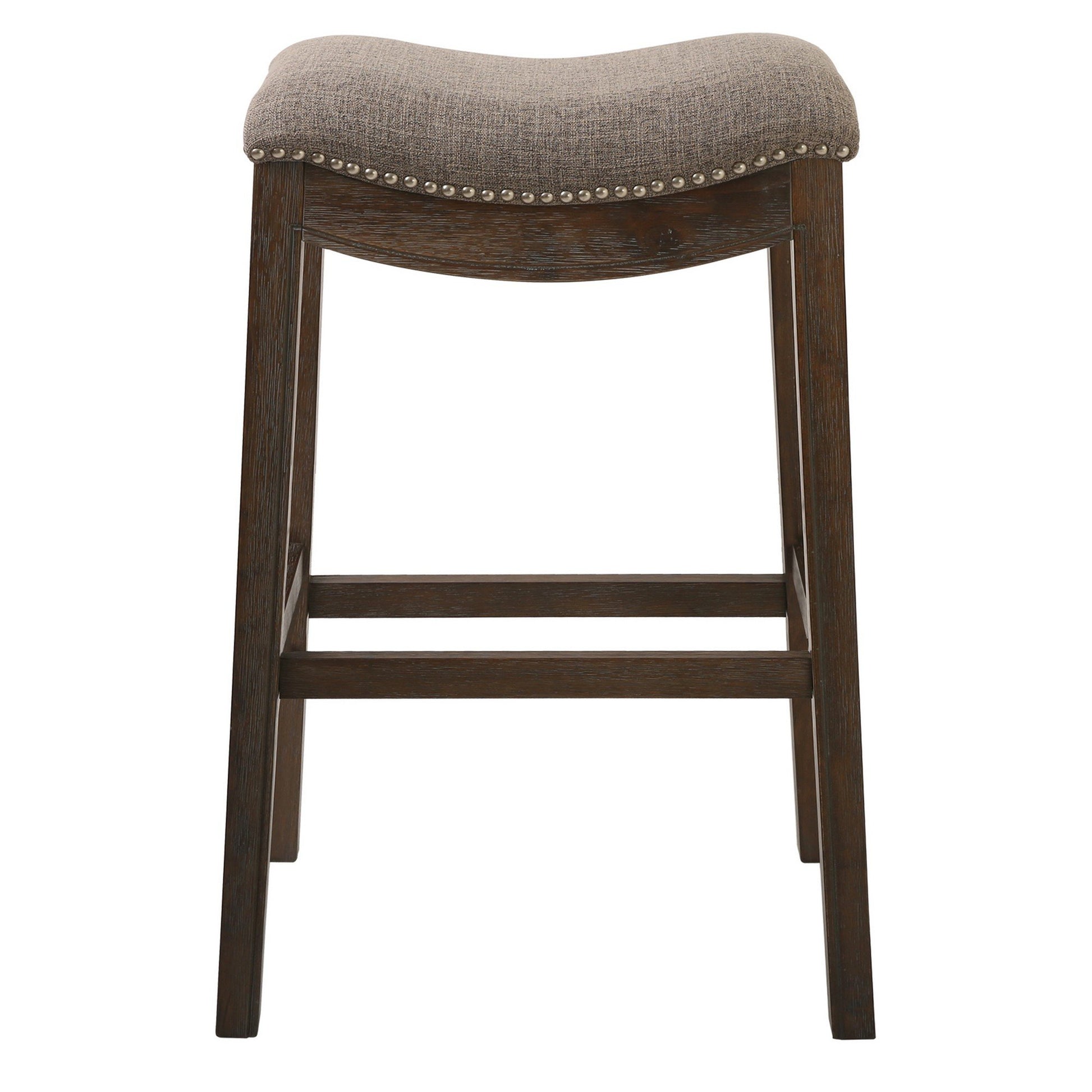 Bar Height Saddle Style Counter Stool with Taupe Fabric and Nail head