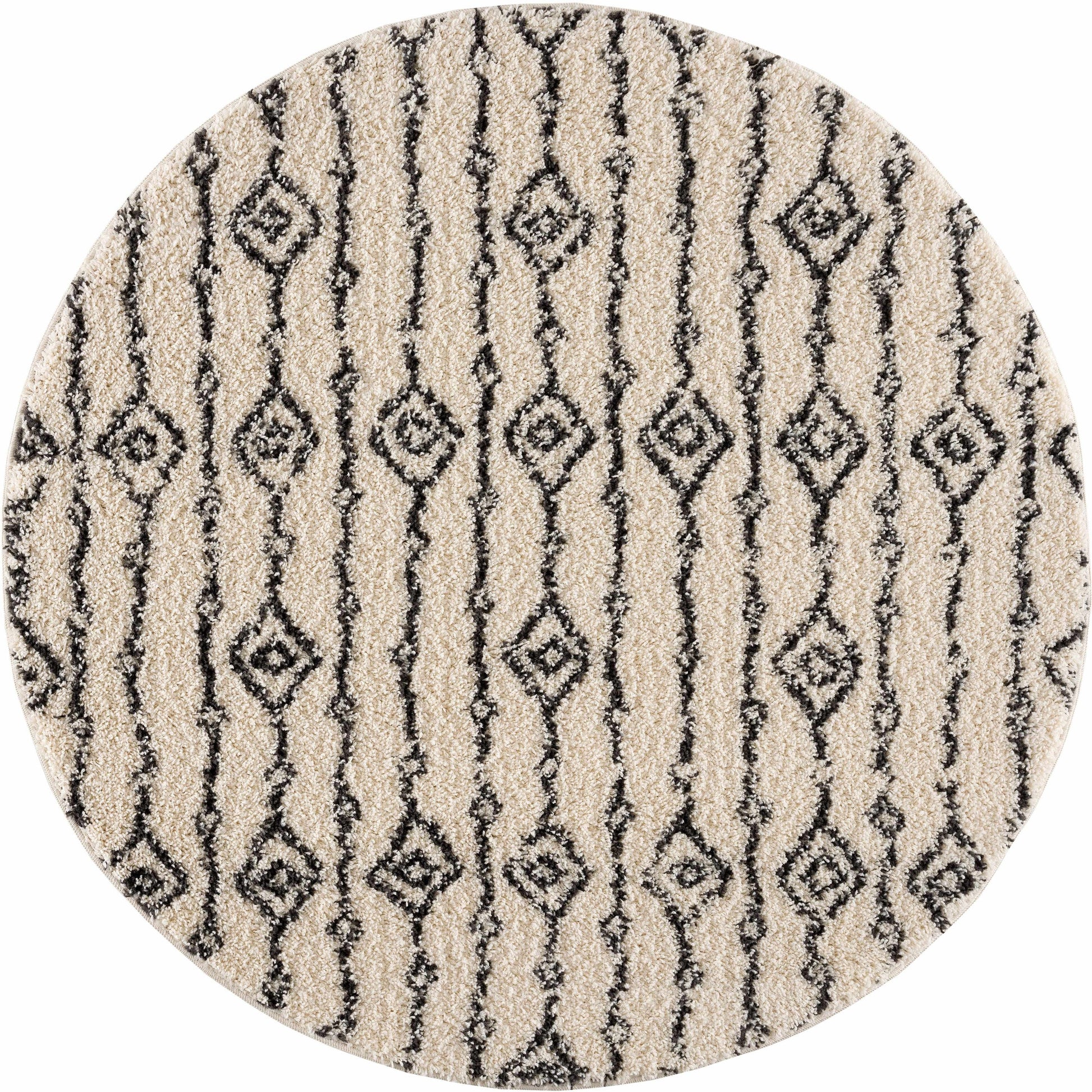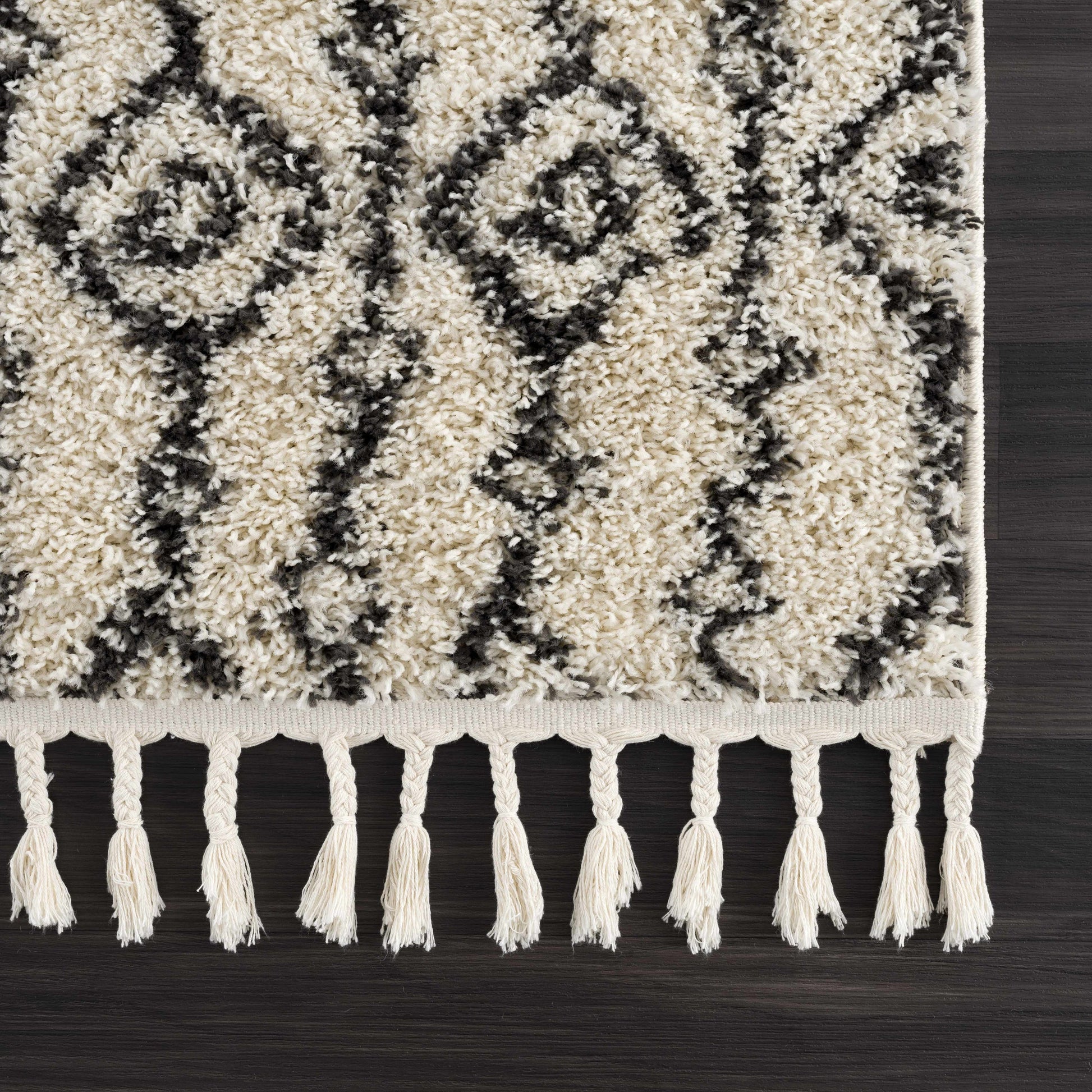 About: The Bayanga Area Rug showcases a cream backdrop adorned with bold charcoal Aztec patterns, adding a touch of boho charm to your space. Its shag texture and fringe accents enhance comfort and style, making it a standout piece for any modern or eclectic home.