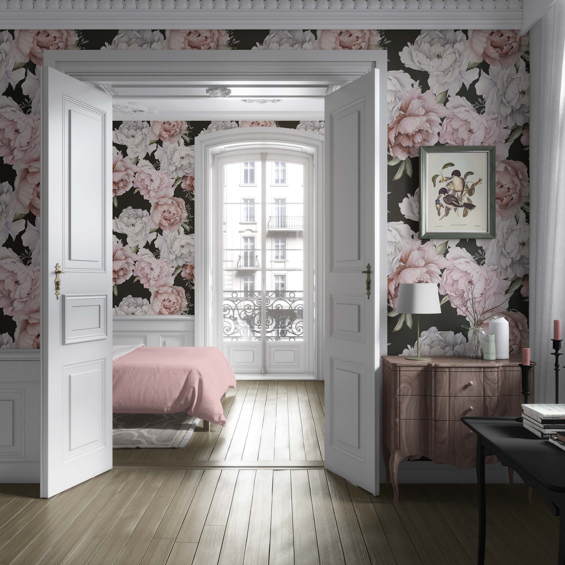 Elevate your space with our "Dark Floral Peonias" peel-and-stick wallpaper, featuring captivating a bold design with pink and white peonias on a dark background that add a touch of nature's aesthetics to your room. This removable wallpaper not only enhances your room's beauty but also offers an eco-friendly choice. Customize your room effortlessly with Olively Home, creating the perfect ambiance you desire. Transform your space with ease and style!