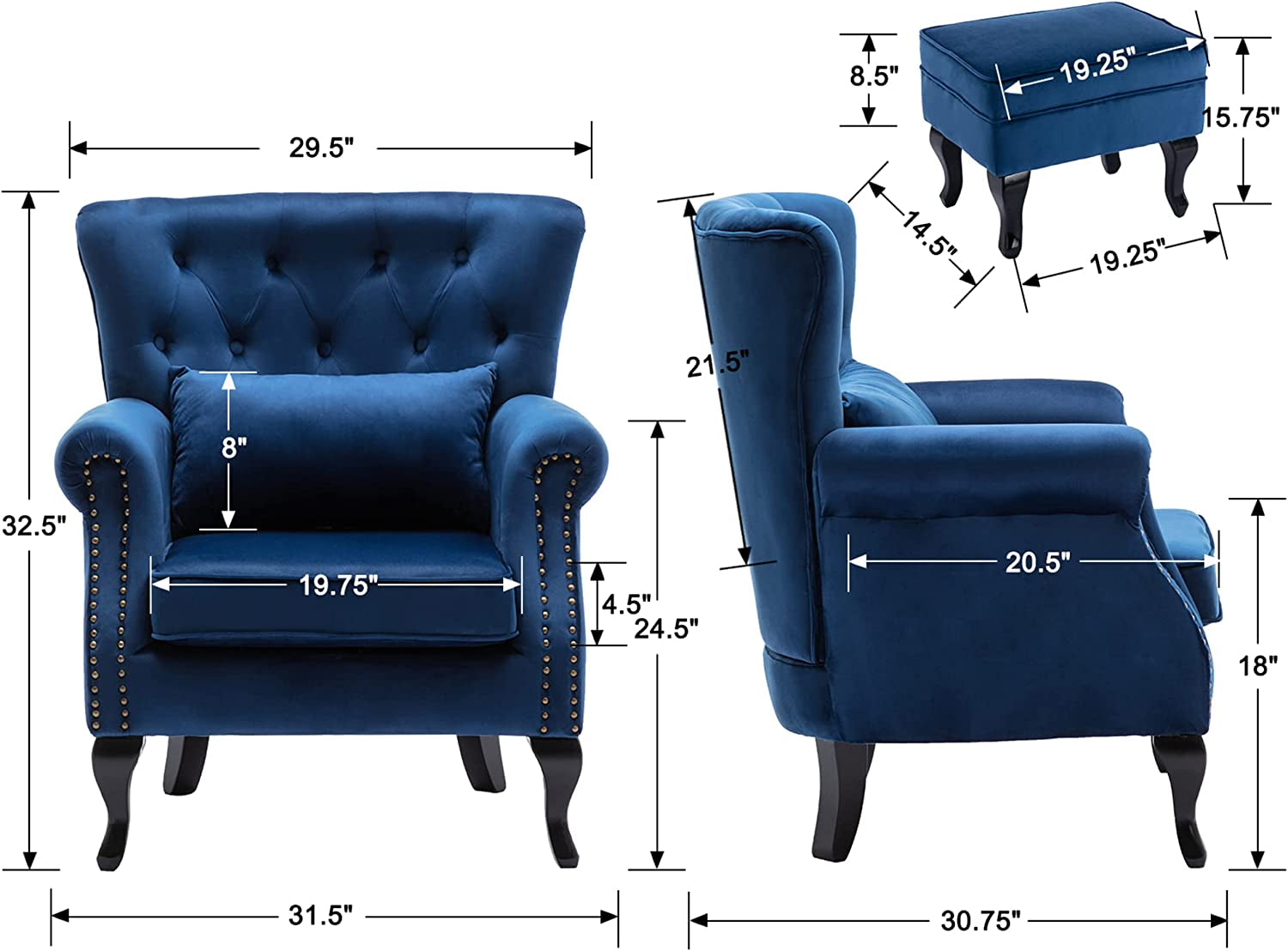 - [COMFORTABLE ARMCHAIR]: With 19.7" wide seat and a padded pillow which can support your waist, also an ottoman to rest your feet, you're sure to sit comfortably