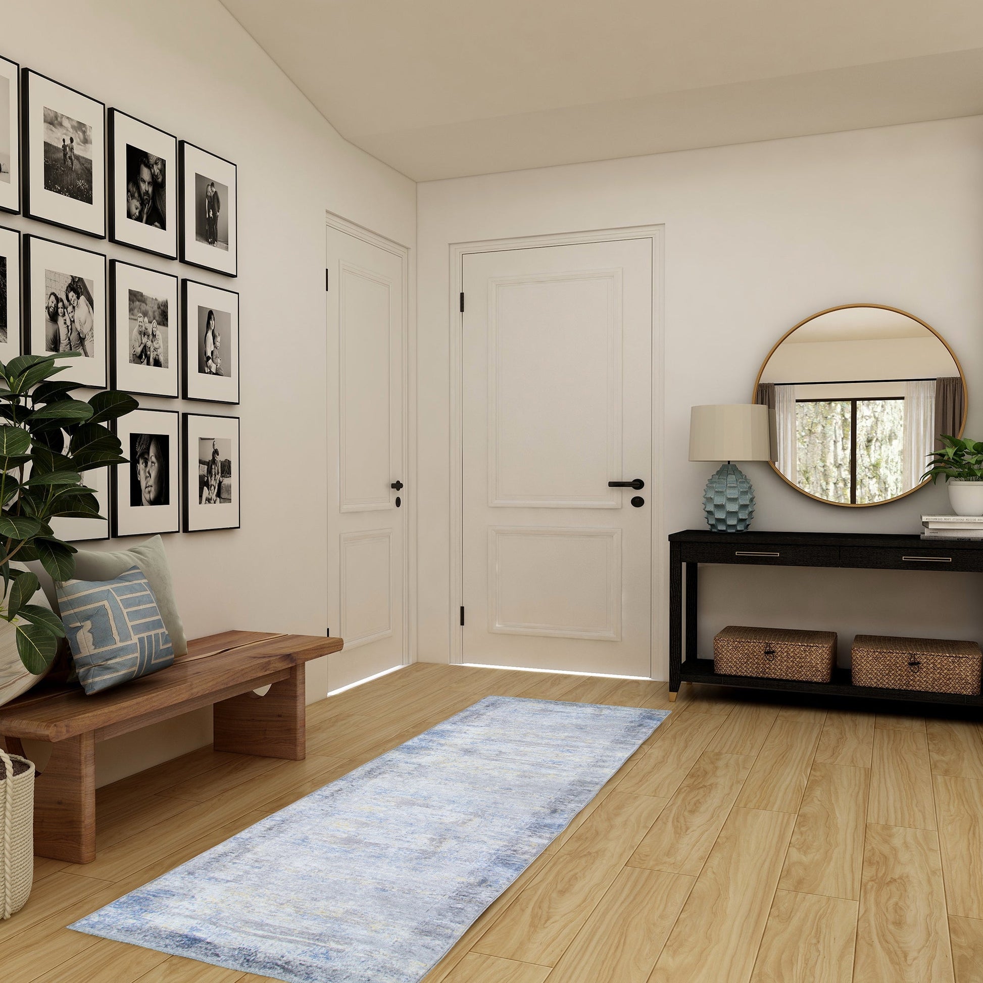 A great addition to any space. This Turkish rug adds a sophisticated and abstract aesthetic that blends modern & contemporary use of the colors Grey & Blue. Is it a rug or a piece of modern art?