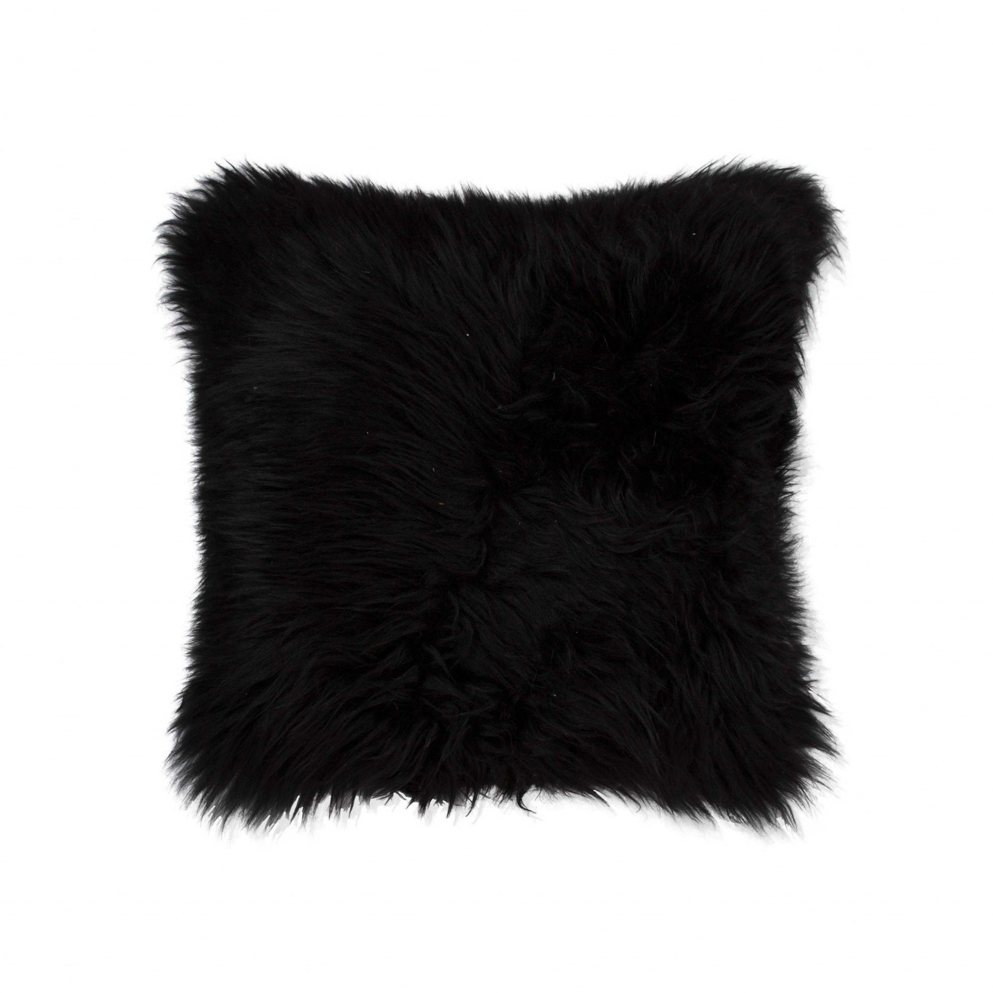 Contemporary Square Black New Zealand Sheepskin Accent Pillow
