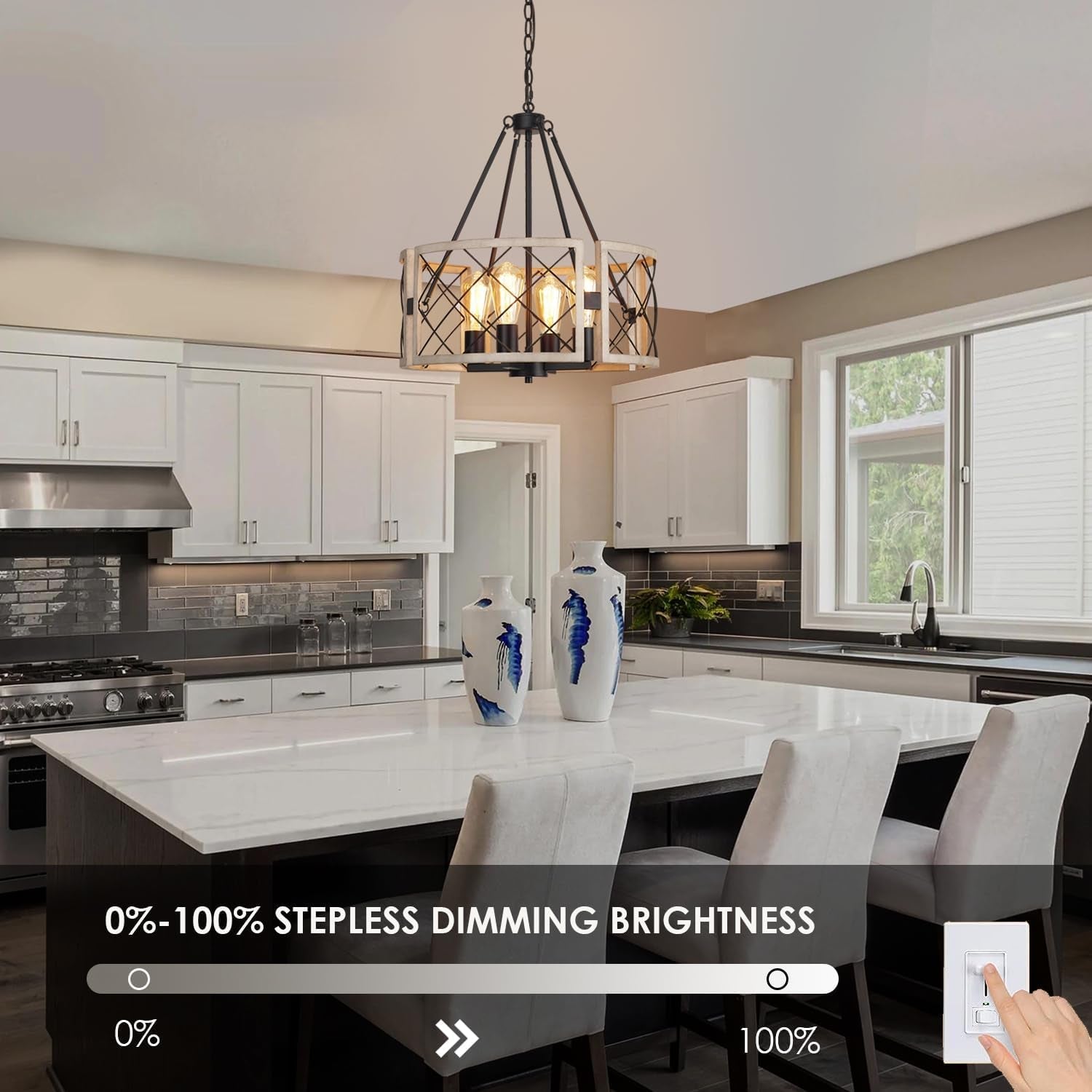 D19'' Farmhouse Chandelier, 4-Light Adjustable Dining Room Light