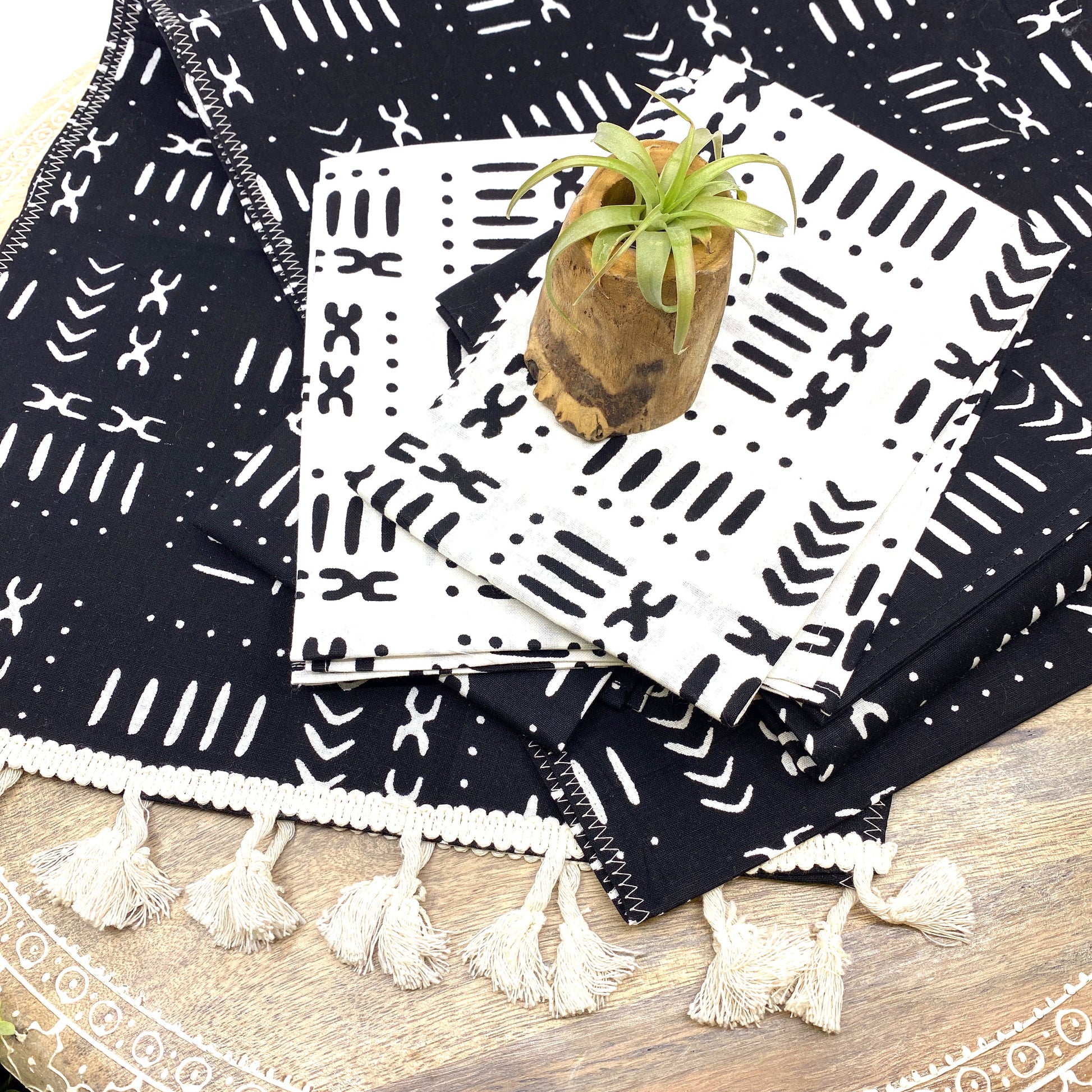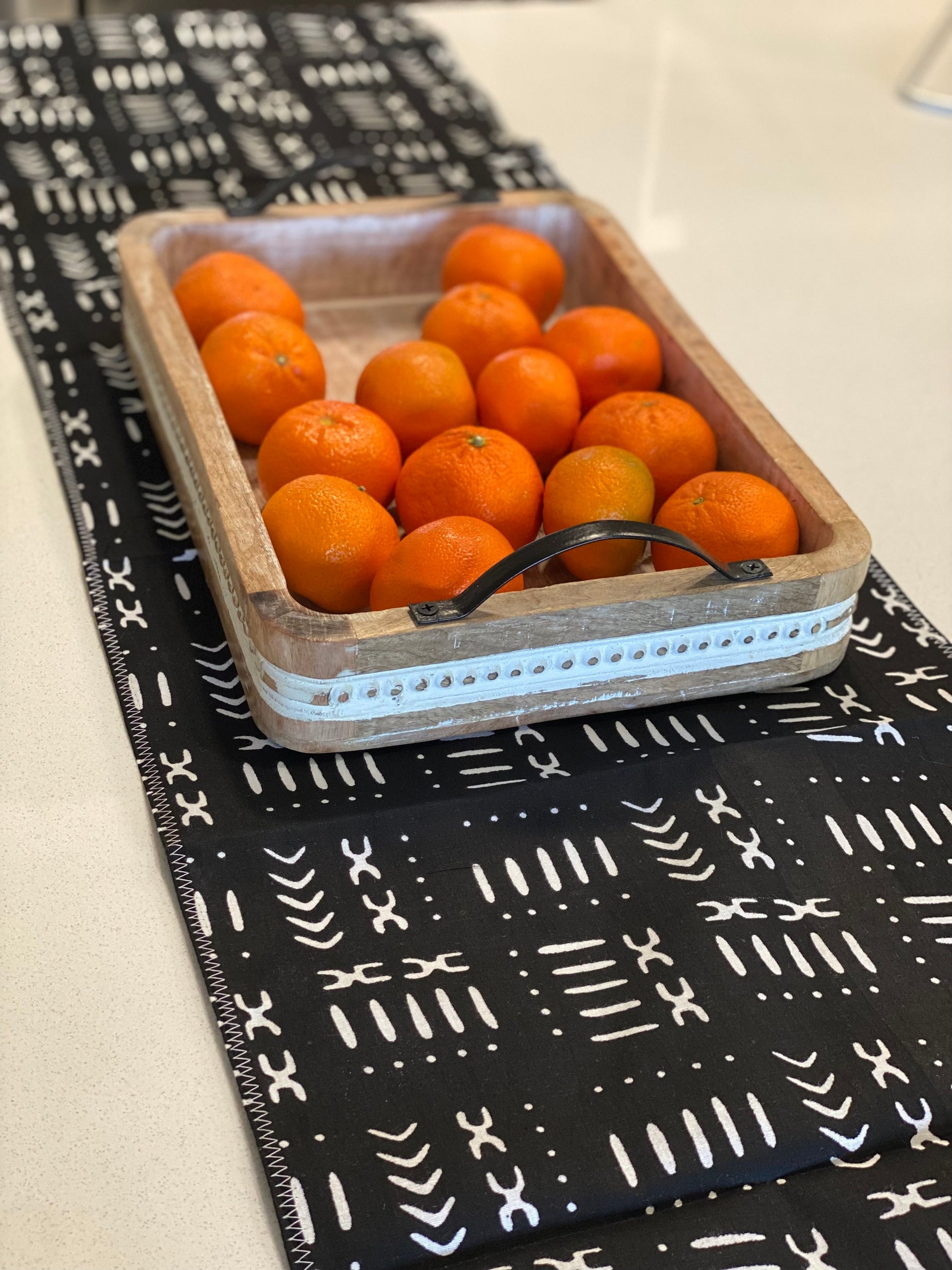 The Handmade, Coffee Table Runner, Black Mudcloth, Wax Print, is crafted with authentic wax print cloth by a talented artisan born and raised in Zimbabwe.