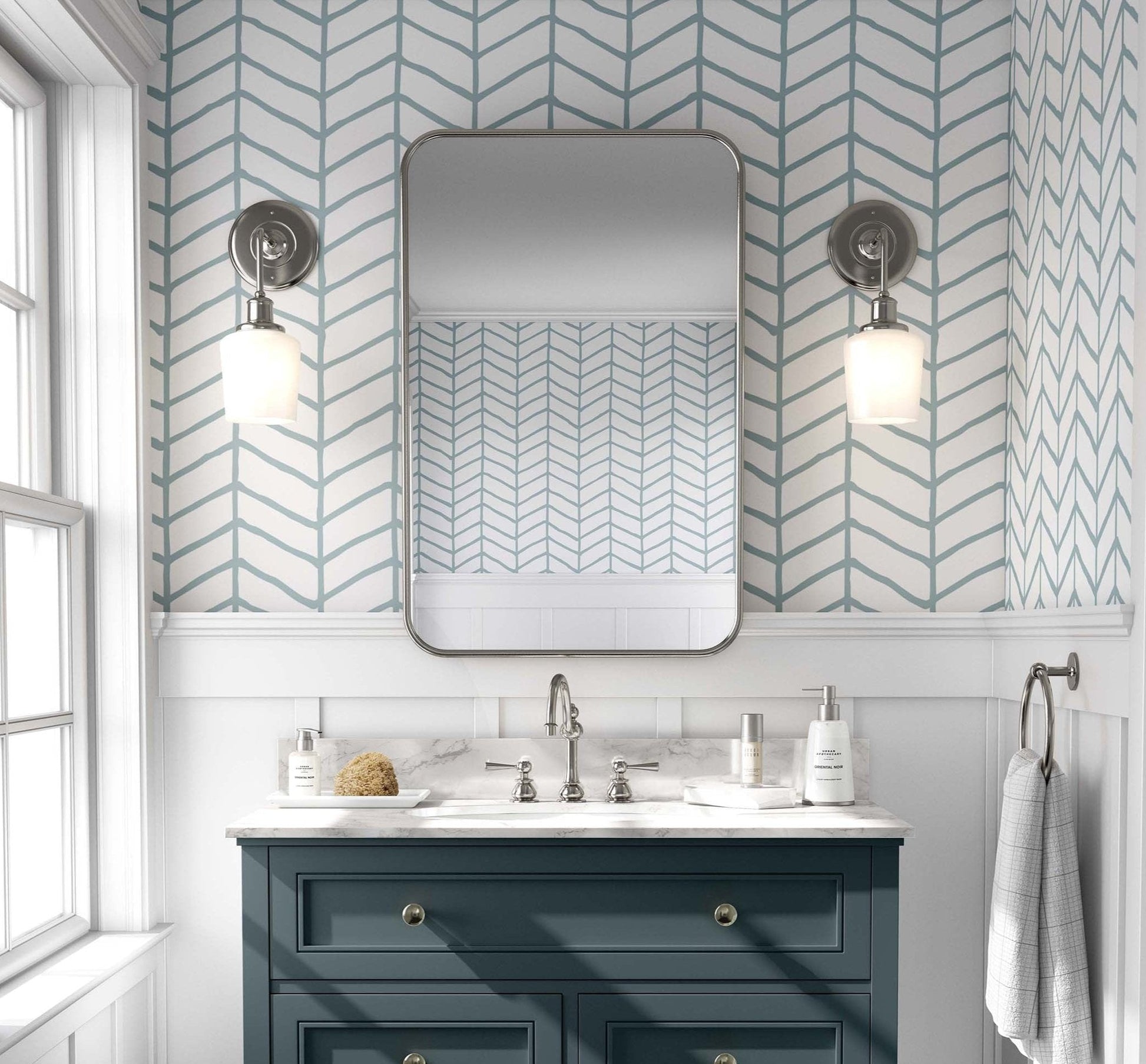 Elevate your space with Inky Herringbone wallpaper – a customizable design that combines a striking blue pattern with a clean white background. With peel-and-stick removable features, you can easily install and enjoy the colors and texture that make a statement in your decor. Personalize your space!