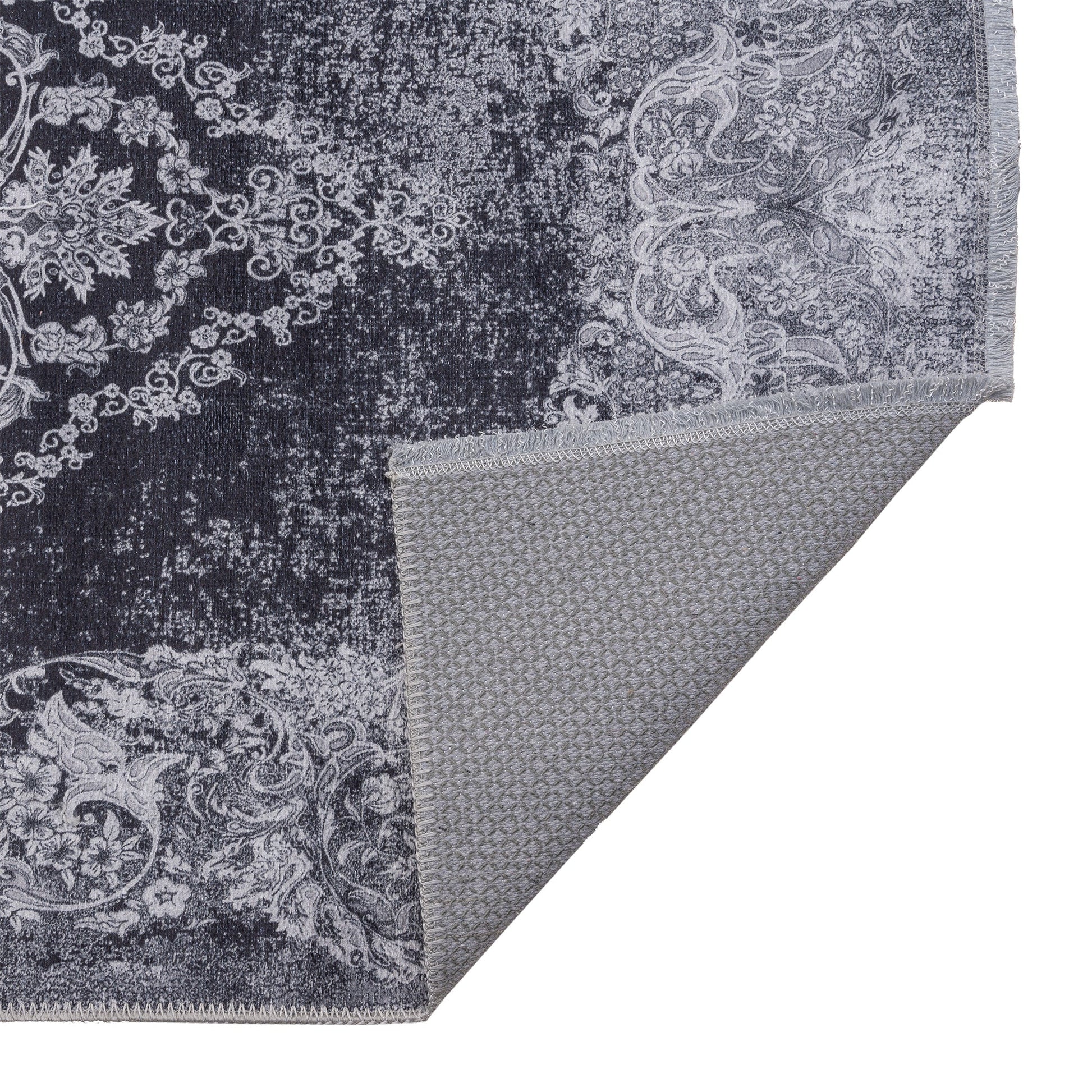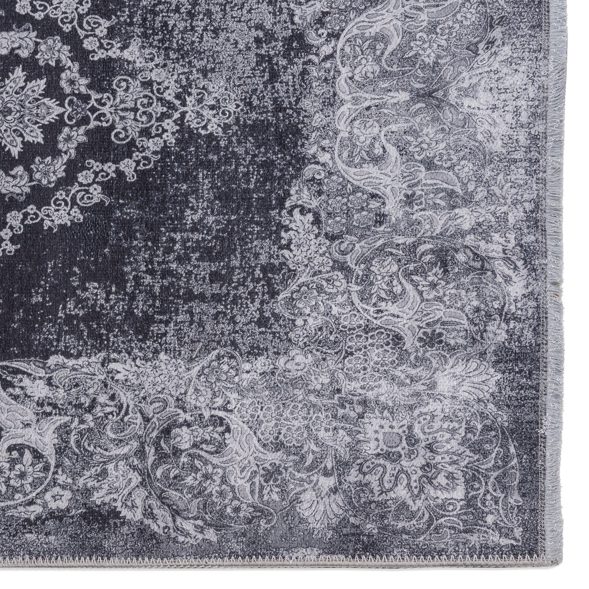 Coveted for hundreds of years, this Turkish rug features a traditional & royal Turkish medallion design with a contemporary flare. Designers employed grey and black tones to bring out new life from an ancient design.
