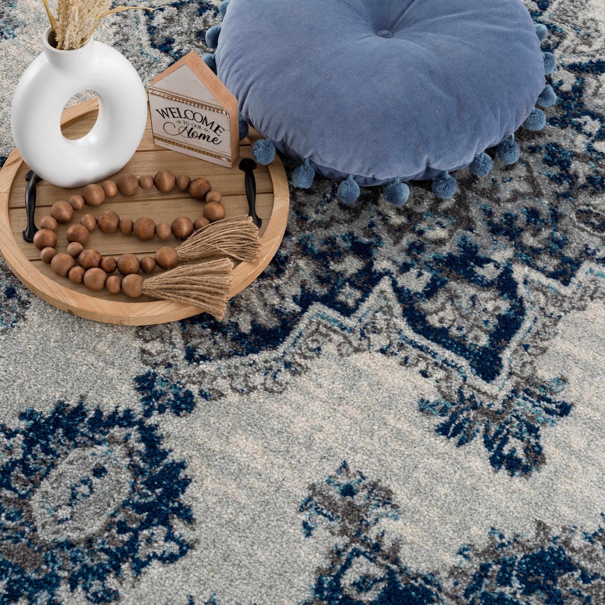 About: The Istanbul IST-3408 Area Rug features a classic medallion design in sophisticated navy, gray, and ivory tones. Perfect for adding a touch of tradition to your space, this rug complements a variety of interiors with its timeless elegance and durable construction.