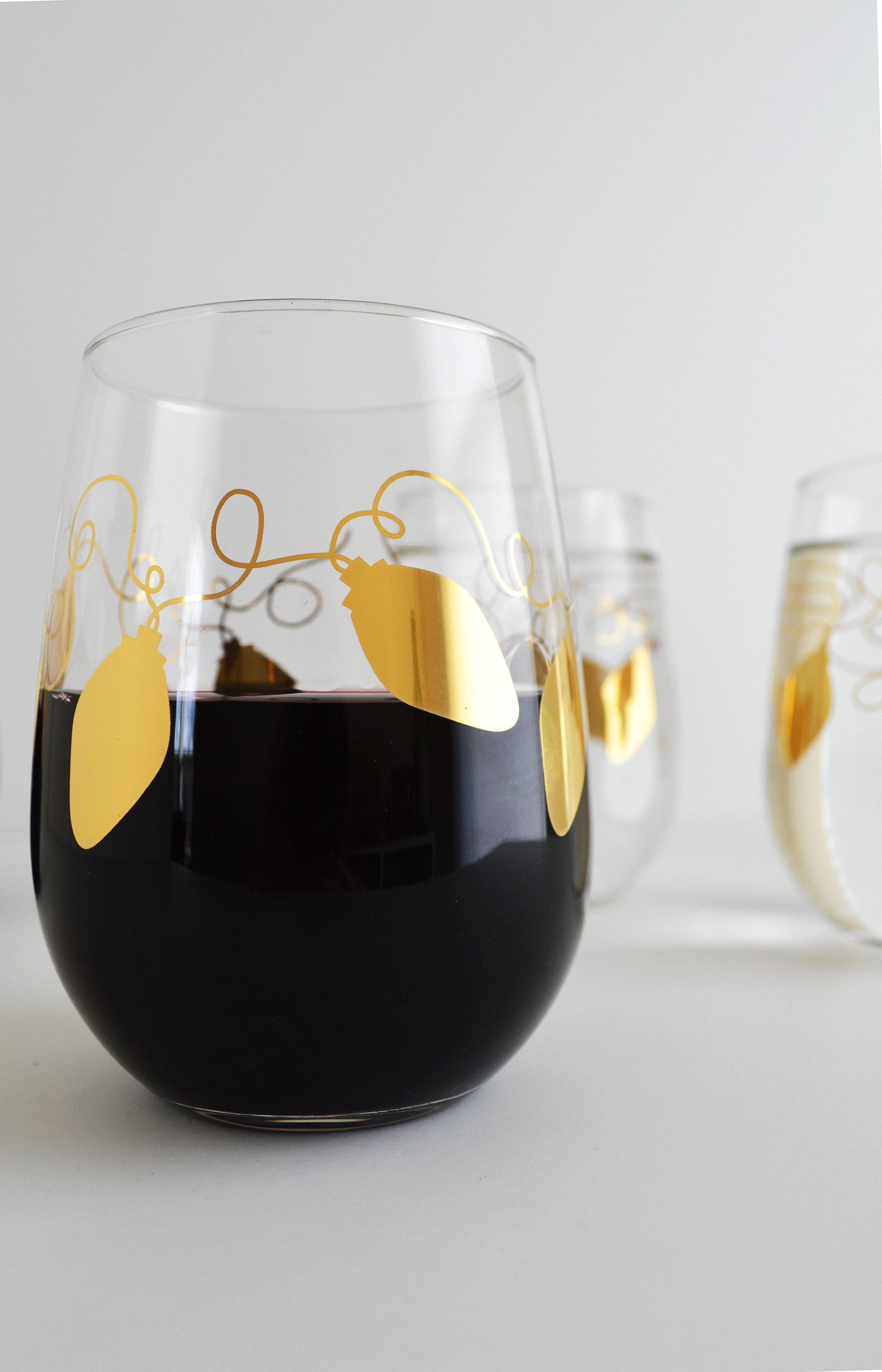 Lovely gold retro Christmas lights. These glasses make a wonderful hostess gift. They are perfect for anyone who loves wine and celebrating the holidays. The festive string lights are created with reflective metallic gold foil that is bright and vibrant. The gold is reflective, like a gold mirror. Dress up your holiday table with these stunning glasses. Perfect for toasting with family and friends!